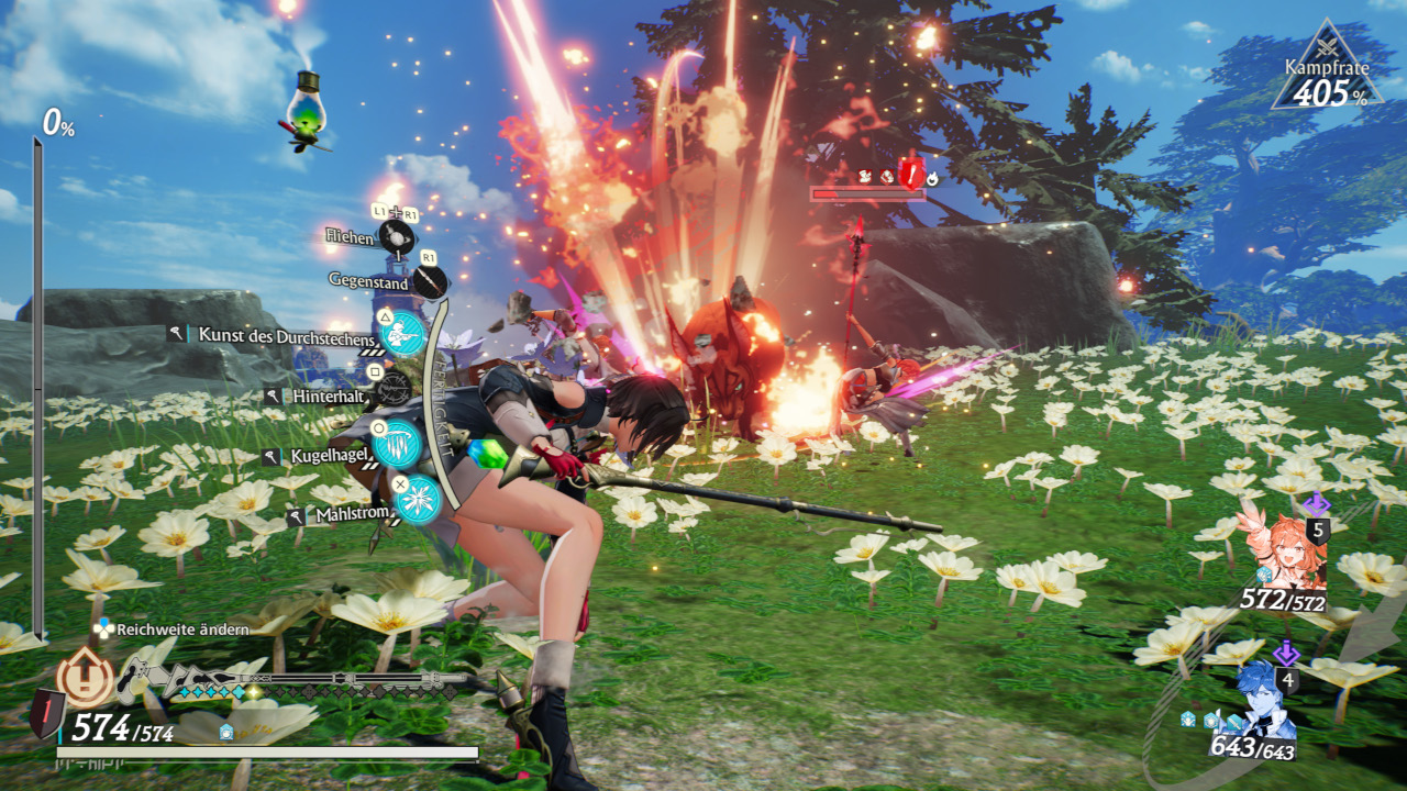 Bei den Kämpfen folgt Atelier Yumia ebenfalls dem bereits zuvor eingeschlagenen Weg zu mehr Action und Tempo. Dabei löst sich das Rollenspiel fast vollständig von den rundenbasierten Wurzeln der Reihe und setzt auf ein Echtzeit-System mit Cooldown-Fähigkeiten. Die aktive Gruppe aus drei der sechs Charakteren führt per Button verschiedene Angriffe, Zauber und Fähigkeiten aus oder setzt Items ein. Zusätzlich ist es möglich, jederzeit zwischen den aktiven und inaktiven Charakteren zu wechseln, gemeinsame Freundschaftsangriffe durchzuführen und Spezialaktionen einzusetzen. Eine taktische Note erhalten die Kämpfe durch zwei verschiedene Entfernungen zu den Gegnern zwischen denen wir aktiv wechseln müssen, um feindlichen Angriffen auszuweichen oder bestimmte Angriffe nutzen zu können. Besonders in den großartig inszenierten Bosskämpfen ist das essentiell. Allerdings fällt die Herausforderung gerade zu Beginn etwas niedrig aus. Leveln wir regelmäßig, achten auf unsere Ausrüstung und investieren in neue Fähigkeiten, ändert sich daran nur bedingt etwas. Hier können die unterschiedlichen Schwierigkeitsgrade Abhilfe schaffen und für jeden Rollenspiel-Fan die gewünschte Herausforderung ermöglichen.
