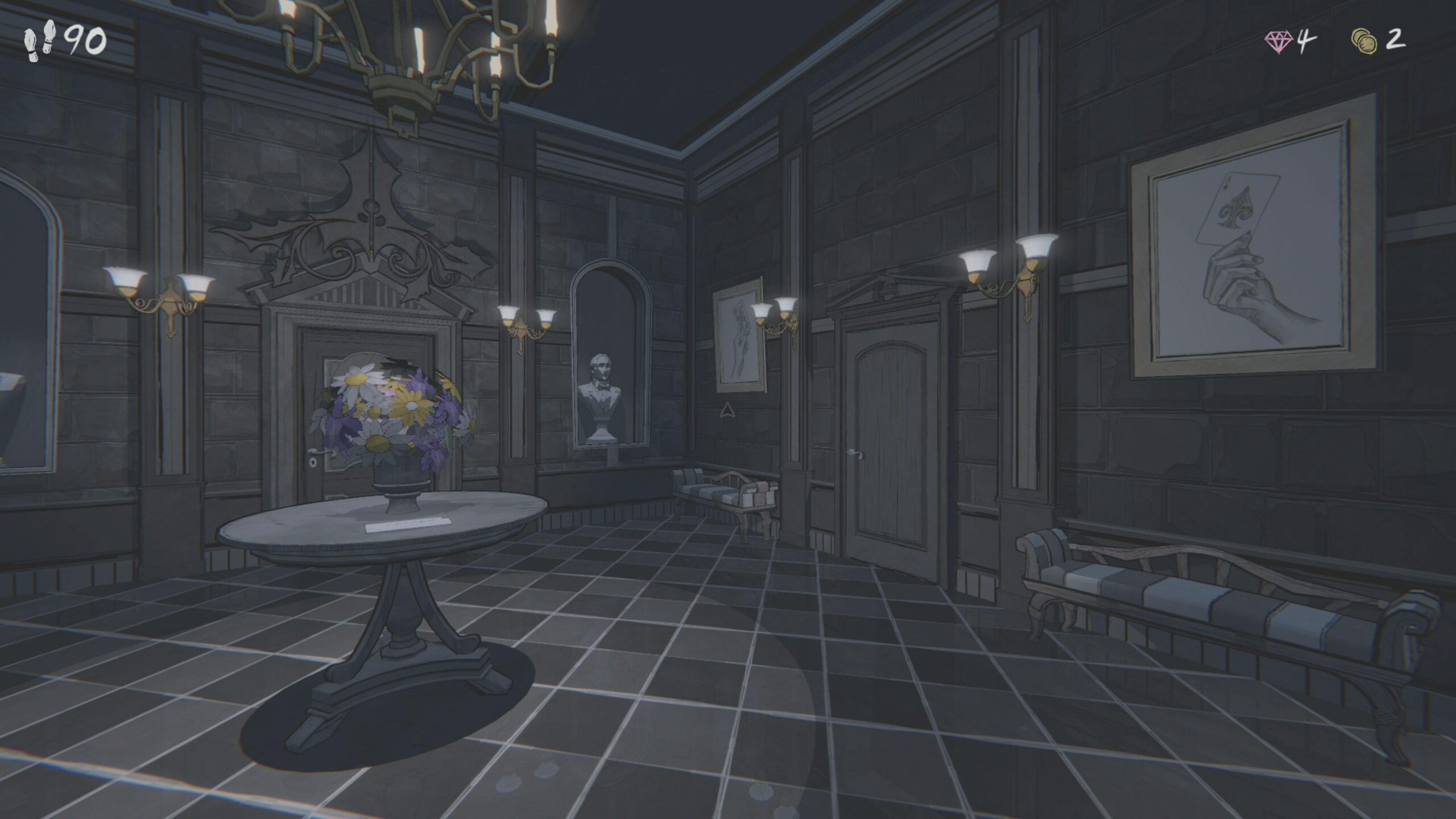 Wir stehen im Foyer des Schauplatzes und Anwesen „Mt. Holly“. Gerade haben wir einen Brief vorgelesen bekommen, von Herbert S. Sinclair, unserem verstorbenen Onkel. Er besagt, dass wir ein – dieses – Anwesen geerbt haben, das wir aber nur bekommen, wenn wir das Rätsel lösen. Wir blicken uns um und haben drei Türen vor und neben uns. Mehr braucht Blue Prince nicht, um seinen Kern offenzulegen. Hinter jeder Tür wählen wir aus meist drei Möglichkeiten, welcher Raum entstehen soll. Dabei merken wir schnell, dass wir hier nicht erkunden, sondern planen. Jede Entscheidung formt nicht nur den nächsten Raum, sondern unseren gesamten Durchlauf. Fünfzig Schritte setzen den Rahmen, und jeder neue Raum kostet zumeist einen davon. Wir gehen somit nicht nur immer weiter, sondern legen auch indirekt fest, was später überhaupt noch erreichbar ist.