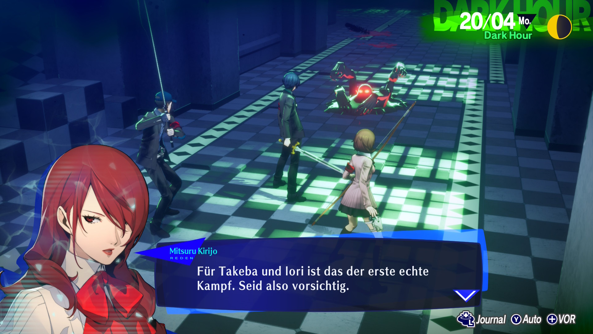 Übernatürliche Kampfkraft erhalten die Heldinnen und Helden in Persona 3 Reload auf drastische Weise: Sie aktivieren ihre Persona-Fähigkeiten, indem sie sich selbst per Kopfschuss einen Schock versetzen. Diese unerwartete Methode erklärt die Suizid-Warnung zu Beginn und die Alterseinstufung ab 16 Jahren. Im Spiel wird der als Evoker bezeichnete Mechanismus zwar thematisiert, doch der Skandal, den eine solche Darstellung auslösen könnte, blieb schon 2006 beim Original aus. Stattdessen rückt schnell das eigentliche Ziel in den Vordergrund: Nachts zieht unser Team, genannt S.E.E.S., in den mysteriösen Turm Tartarus, um dort gegen Schattenwesen zu kämpfen und dem Geheimnis der Dark Hour auf den Grund zu gehen.
