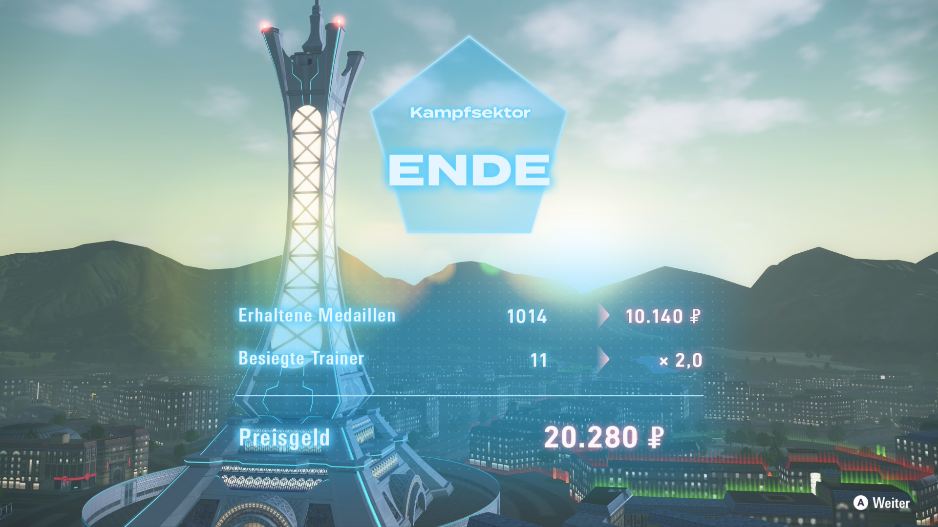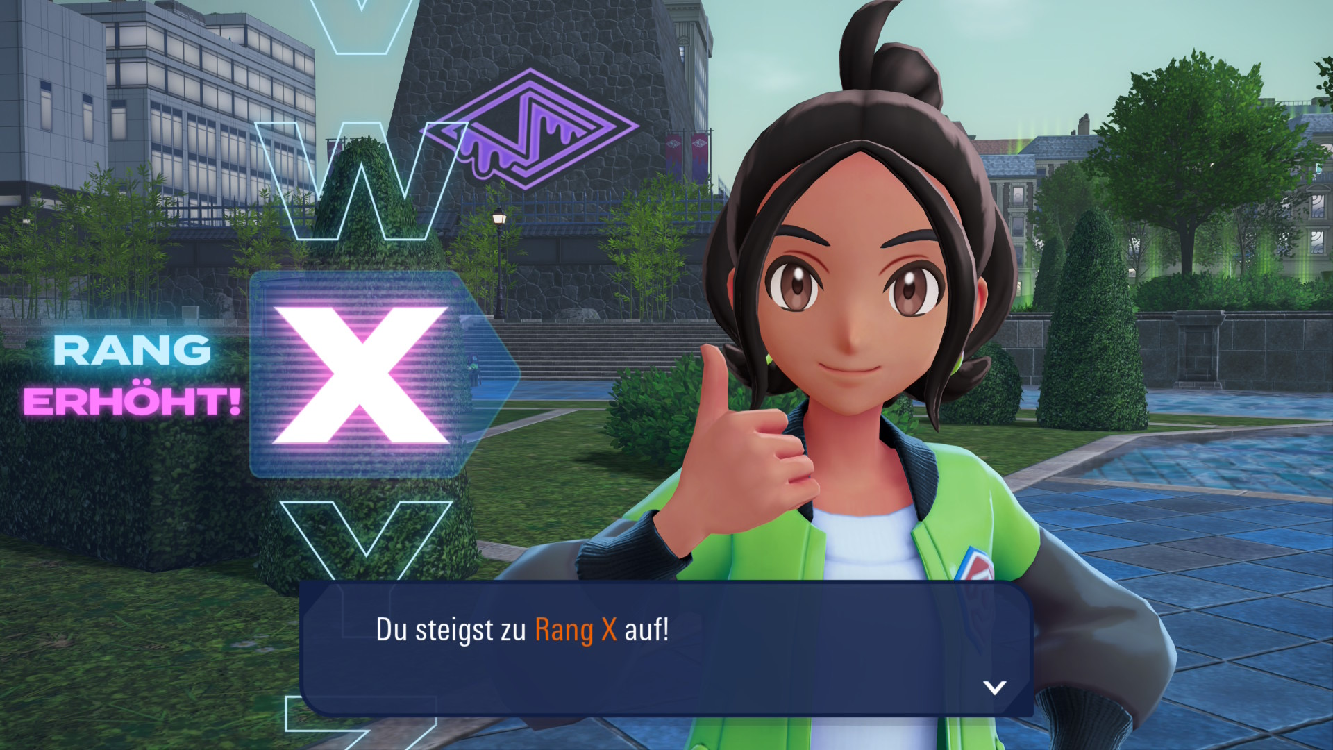 Nachts wandelt sich die Stadt spürbar. Einige Bezirke werden zu abgeriegelten Kampfsektoren umfunktioniert, in denen das Z-A-Royale ausgetragen wird. Dieser allnächtliche Wettkampf ist das titelgebende Feature des Spiels. Als Teilnehmende starten wir bei Rang Z und arbeiten uns mit jeder gewonnenen Herausforderung bis zum Rang A vor. Nach jedem Duell gegen zunehmend stärkere Trainer erhalten wir Ticketpunkte; mit genug davon dürfen wir ein Aufstiegsmatch bestreiten. Gelingt der Sieg im entscheidenden Match, steigen wir im Ranking die Buchstabenleiter hinauf. Dieses Konzept erinnert an ein Turnier, wirkt durch die Verknüpfung mit dem Tag-Nacht-Zyklus aber angenehm organisch. Das Z-A-Royale verleiht unserem nächtlichen Treiben einen klaren Sinn und macht Fortschritt direkt sichtbar. Laut Stadtlegende wird Trainerinnen und Trainern, die im Z-A-Royale die oberste Rangstufe erreichen, sogar ein Wunsch erfüllt – ob Gerücht oder wichtiger Storypunkt, zeigt sich im Laufe des Spiels.