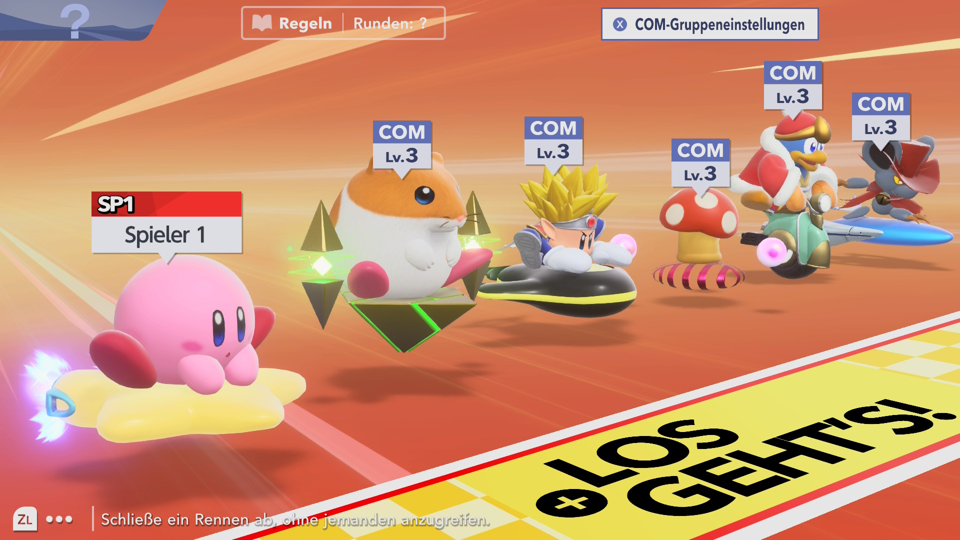 Optik und Sound setzen klar auf Lesbarkeit und Wohlfühl-Chaos. Farbakzente, Partikeleffekte und die knuffigen Rider-Animationen erfreuen uns jede Runde, ohne dass das Geschehen unübersichtlich wird. Gerade die Menüs wirken wie ein sorgfältig kuratierter Schreibtisch, auf dem alles seinen Platz hat. Bonuspunkte gehen besonders an die Musik: Wunderbare Untermalung, auch mit schon bekannten Themen, erfreut unser Gehör. Wie auch in Smash Bros. können wir im integrierten Musikspieler einfach die Spielmusik hören, und wer will, schaltet weitere Tracks frei. Ausgewählte Stücke sind sogar in der Mobil-App Nintendo Music gelandet, was den Soundtrack auch abseits der Konsole als Werbung… ääh, anhörbar macht. Selbstverständlich gibt es einen Fotomodus, der besonders in Wiederholungen schöne Ansichten ermöglicht.